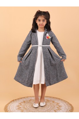 This ADORABLE DRESS IS DESIGNED FOR A YOUNG GIRL AND FEATURES A CHARMING AND COZY LOOK, LIKELY SUITABLE FOR COOLER WEATHER.